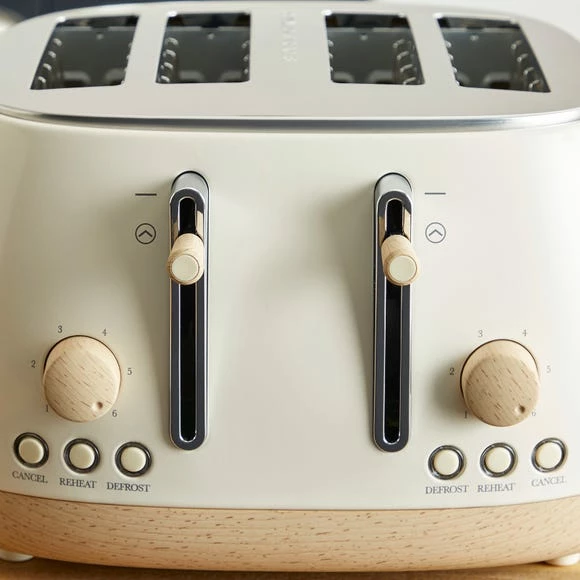 Designed with extra wide slots to cater for an array of bread types, this stylish toaster has multiple features to provide you with great toast. Boasting an adjustable browning control it has a high lift feature, centring guide to ensure even toasting and a removable crumb tray for ease of cleaning. The modern colourway will also complement an array of kitchens and can be paired with the matching Dunelm 1.7L Country Kettle.
