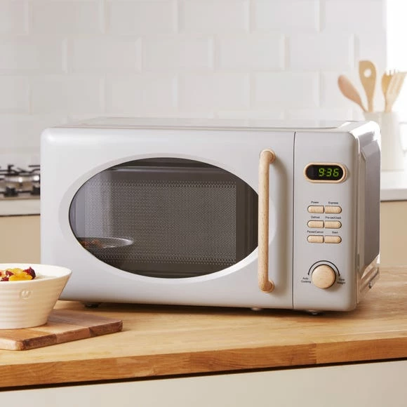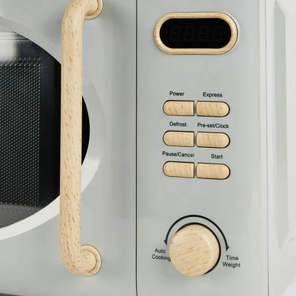 Designed with a classy grey colourway, this microwave boasts a generous 20 litre capacity with a high 700W power output. Ideal for larger family households, this microwave features a digital clock with a 60 minute timer which you can set to cook and reheat your meals, and a defrost setting suitable for all meal types and times of eating. Crafted with an easy to remove 24.5cm glass turntable, this microwave features a child lock for added peace of mind.