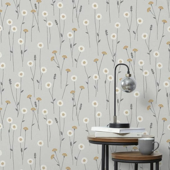 Bring the feeling of spring into your home with this matt yellow Scandi Floral Wallpaper.