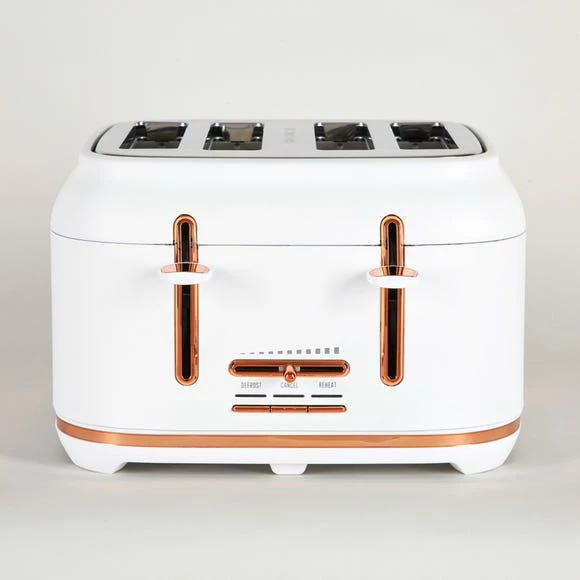 Offering a practical four slice capacity, this matt white toaster features variable browning control dials, variable width bread slots with centering guides and high lift facility for added convenience.