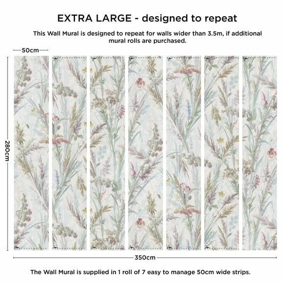 Featuing a charming floral design, our Country Grasses mural would bring a touch of pretty, delicate style to any room, providing a simple, yet effective way to upgrade your walls. Boasting easy paste the wall application and a wipe clean surface, this mural is supplied in one roll of 6 easy to manage 50cm wide strips. This wall mural also features a repeating pattern across multiple rolls, making it perfect for any size room.