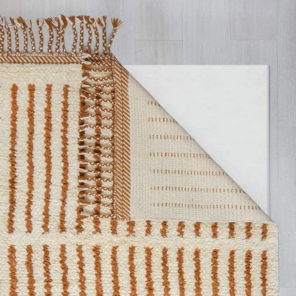 This is a hand-made rug. When opening, re-roll your rug pile out and leave in a warm room for 24 hours before putting in place, this will help to reduce wrinkles and curling from packing. Do not pull any loose threads, please cut them carefully with scissors to remove. Avoid prolonged exposure to direct sunlight as this may cause fading of the colour. Turn your rug regularly to ensure even wear and to reduce pressure marks from furniture. Wool fibres may shed when new and during use, this is a characteristic of this product and is not a defect and should reduce with normal use and weekly vacuuming.