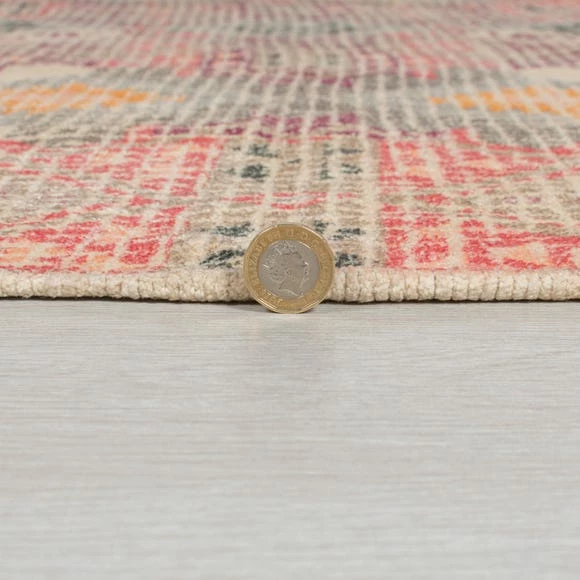 This is a hand-made flatweave rug. When opening, re-roll your rug pile out and leave in a warm room for 24 hours before putting in place, this will help to reduce wrinkles and curling from packing. Turn your rug regularly to ensure even wear and reduce pressure marks from furniture. Do not pull any loose threads, please cut them carefully with scissors to remove. Avoid prolonged exposure to direct sunlight as this may cause fading of the colour. A small amount of fibre loss is normal on a new rug. Before using any cleaning products on your rug, test on an inconspicuous area first to ensure it does not affect the colour. Clean spills immediately by blotting with a clean dry white cloth – do not rub as this may stain the fibres. Vacuum your rug regularly to remove everyday dirt, we recommend the use of a suction type vacuum cleaner as a rotating vacuum brush can cause damage to the pile surface. We recommend the use of an anti-slip mat beneath your rug to prevent it from slipping and sliding out of place. Please do not leave babies or young children unsupervised on this rug.