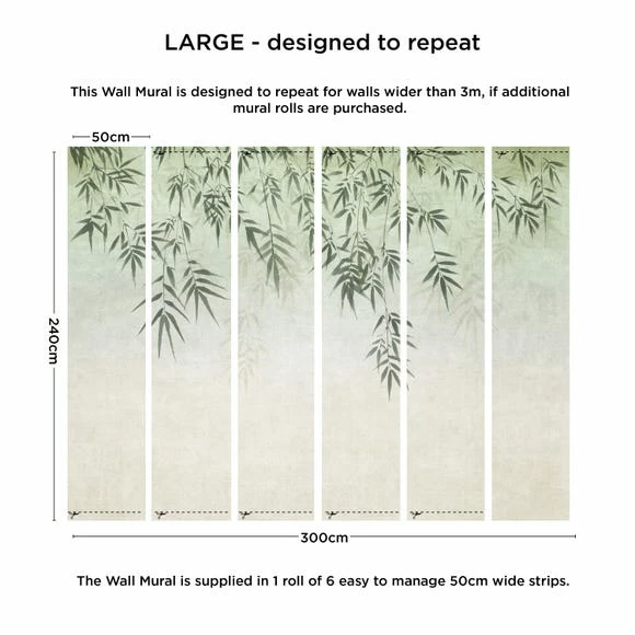 - This mural is designed to repeat for walls wider than 3m – if additional mural rolls are purchased