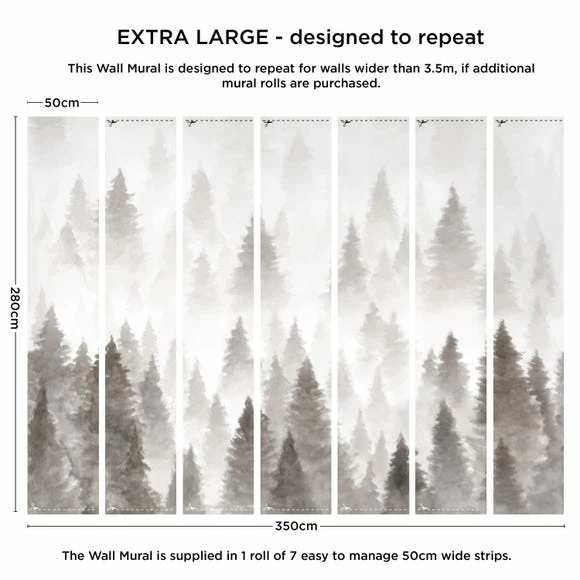 The perfect way to bring a calming, yet bold touch to your home, the stunning pine forest wall mural provides a great way to transform any plain wall into a stunning feature. Boasting easy paste the wall application and a wipe clean surface, this mural is supplied in one roll of 6 easy to manage 50cm wide strips. This wall mural also features a repeating pattern across multiple rolls, making it perfect for any size room.