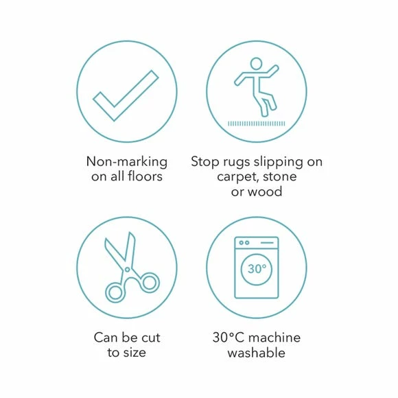 Anti-slip mats are an absolute must-have to keep your rug looking great in your home. The anti-slip mat contains a polyester fleece to ensure that the rug doesn’t move around and also prevents trip hazards and slips in high traffic areas. To avoid creasing and folding in slimmer flatweave rugs, the flat, thin mat helps stop any unwanted lumps and bumps and ensures that you are not having to move your rug back and forth to its original location. Suitable for any type of flooring, even those with underfloor heating, our anti-slip mat is extremely versatile and is an effective alternative from other rug grips which may contain sticky residue that could harm your floor and rug backing. In case of any accidental spillages, this mat has the advantage of being machine washable up to 30 degrees.