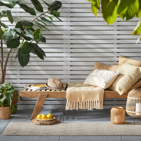 Add texture to your indoor and outdoor spaces with the Seed design. Pairing a neutral shade with contemporary leaf design in a textured pile. Our Indoor/Outdoor collections use a 100% polypropylene composition to make our designs perfect for both indoor and outdoor living. Built for the outdoors with weather-proof and UV-resistant qualities, don’t worry about any mess, the Seed runner is stain-resistant and easy to clean with a simple hose down. The low-profile composition is perfect for sitting under furniture. We love using outdoor runners to create social outdoor zones or add comfort underfoot in busy areas such as the kitchen.