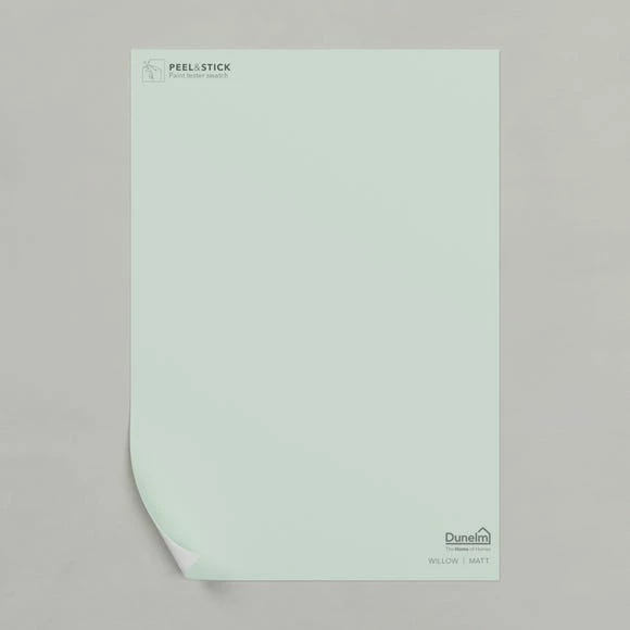 If you’re still unsure about your colour choice, our peel and stick swatches will make choosing the right colour for your room easy, simply peel off the backing and apply to your wall of choice. The low-tack adhesive backing is designed for peeling off and sticking somewhere new, so you can move it around the room to see how it looks in all areas and next to different furnishings. We make our samples using real paint so you can trust that the colours you see on them are exactly the results you’ll get from the tin. Our swatches are supplied in a standard A5 size.