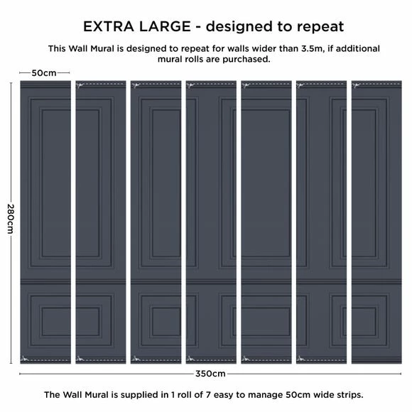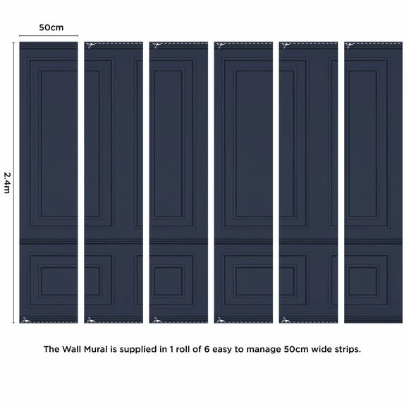 Bring a classic wood panelled look to your home with this stylish navy mural, perfect for creating a beautiful feature wall. Boasting easy paste the wall application and a wipe clean surface, this mural is also designed to repeat for walls wider than 3m if additional mural rolls are purchased.