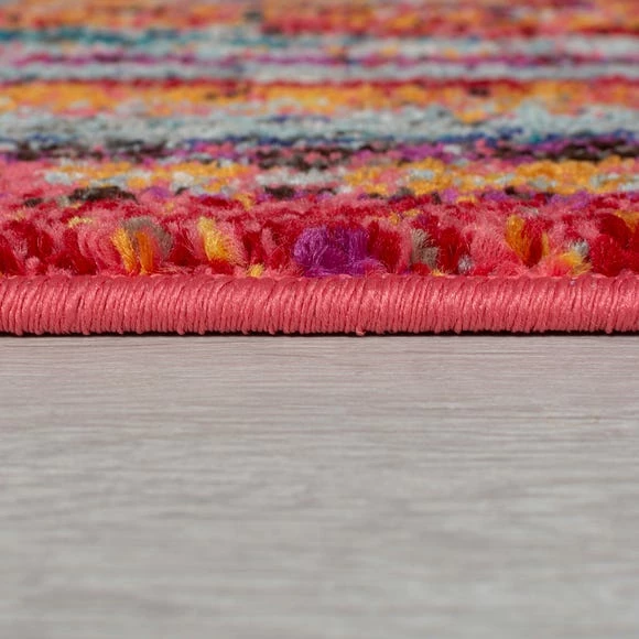 When opening, re-roll your rug pile out and leave in a warm room for 24 hours before putting in place, this will help to reduce wrinkles and curling from packing. Do not pull any loose threads, please cut them carefully with scissors to remove. Turn your rug regularly to ensure even wear and to reduce pressure marks from furniture. Suitable for use with a heated floor. Before using any cleaning products on your rug, test on an inconspicuous area first to ensure it does not affect the colour. Clean spills immediately by blotting with a clean dry white cloth – do not rub as this may stain the fibres. Vacuum your rug regularly to remove everyday dirt, we recommend the use of a suction type vacuum cleaner or change your roller setting to the highest setting to reduce contact with the pile. Keep away from fire, do not leave children unattended on this rug.