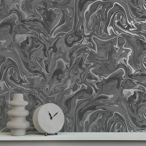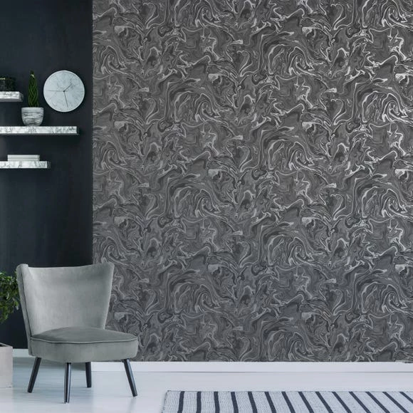 Perfect for creating an elegant feature wall, this wallpaper features a marble pattern which has a contemporary charcoal colourway. Easy to apply, just paste the paper!