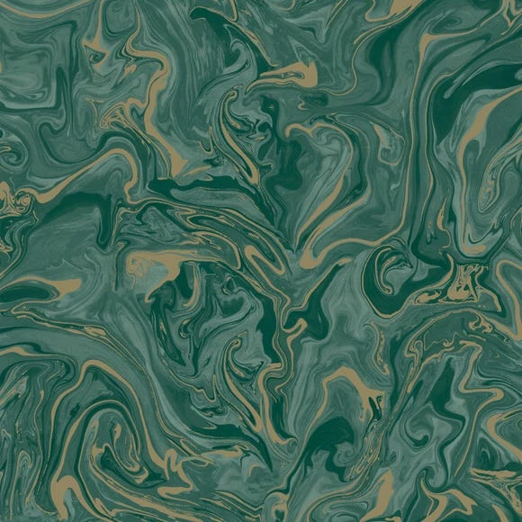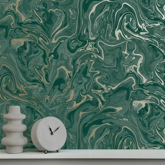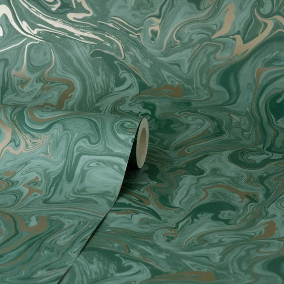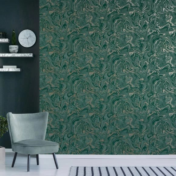Perfect for creating an elegant feature wall, this wallpaper features a marble pattern which has rich emerald colourway. Easy to apply, just paste the paper!