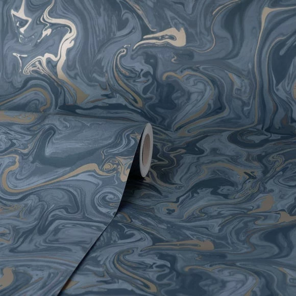 Perfect for creating an elegant feature wall, this wallpaper features a marble pattern which has a stunning navy colourway. Easy to apply, just paste the paper!