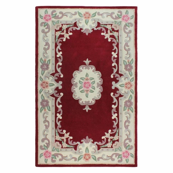 Beautifully designed in a red colourway with floral patterns and swirling border, this stunning traditional rug is crafted from 100% wool and is hand carved in durable short-pile type to ensure minimal shedding and provide utmost comfort. Available in a choice of sizes.