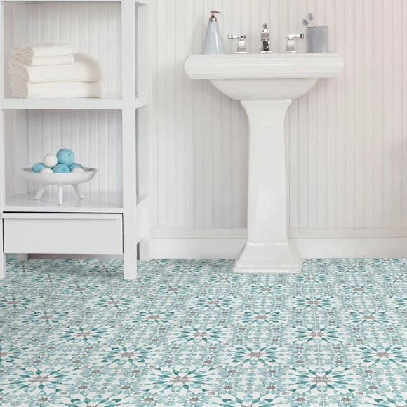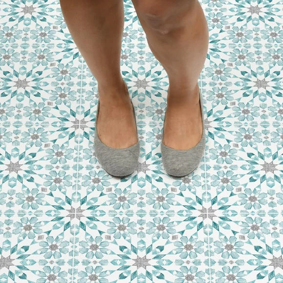 Perfect for achieving a stylish tiled finish without the need for tools or grout, these self-adhesive floor tiles from Floorpops are completed with a stunning geometric design in a fresh blue colourway. These tiles are crafted from virgin vinyl and feature a peel and stick design with permanent adhesive for added durability. Easy to sponge clean, these tiles feature a water-resistant finish and are ideal for use in kitchens, bathrooms and dining areas.