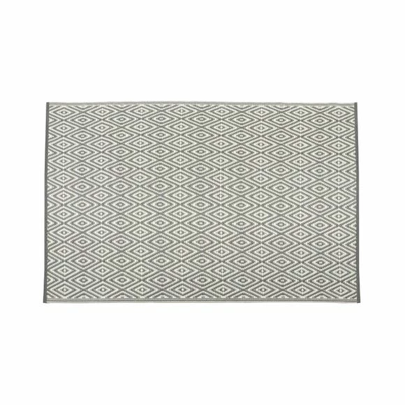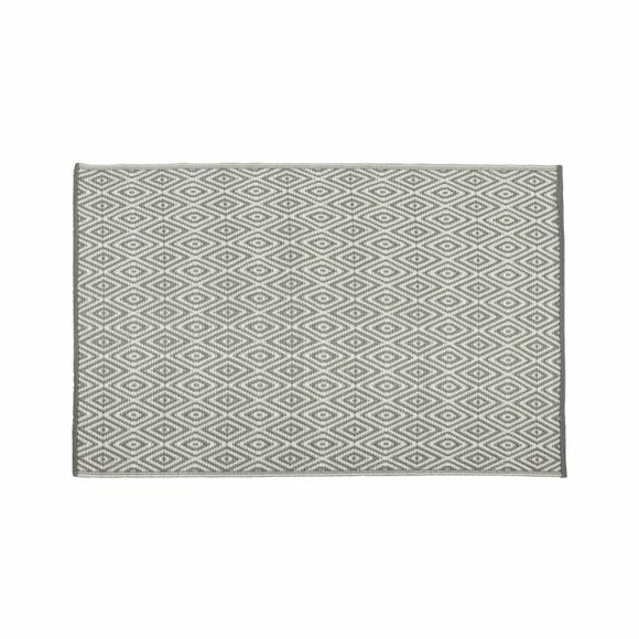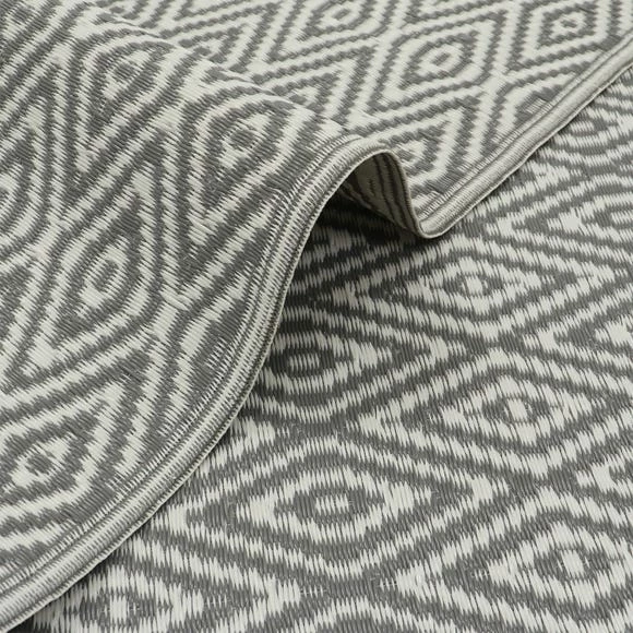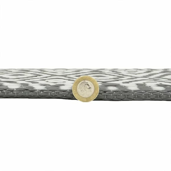 Your home is about to have double the style as this outdoor rug is fully reversible! Perfect for that quick style swap. The diamond print in soft grey and white creates an eye-catching design, a great addition both inside or outside the home adding practicality and style to any space. This stylish rug features a flat woven pile constructed of 100% polypropylene meaning its hard wearing and durable. Not only is this rug made to withstand rain and sun, but it is also lightweight and can be rolled up for easy storage. It would look great on your decking, patio or balcony areas. Can be used to sit on or many people opt to have the mat under the front of furniture or tables. Multi-use: the mats can be taken to the beach, park or with you on picnics, ideal for taking on holidays too; camping or caravanning.