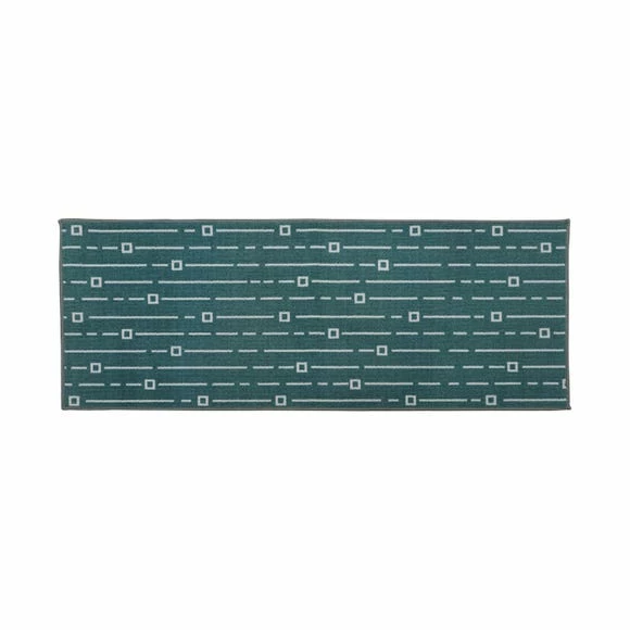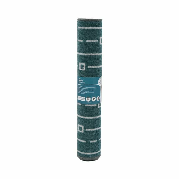 Protect your hard floors and carpets with JVL’s Savio runner for the perfect addition to any entrance, hallway or kitchen. Not only does it add a touch of style with the choice of a teal stitching stripe pattern or grey crosshatch pattern, but it also serves a practical purpose. The fibres trap dust and dirt, preventing it from trailing across your floors, and absorb excess moisture to prevent slipping hazards and wet floors. The latex backing keeps the mat in place as you wipe your shoes and is fully machine washable for easy maintenance.