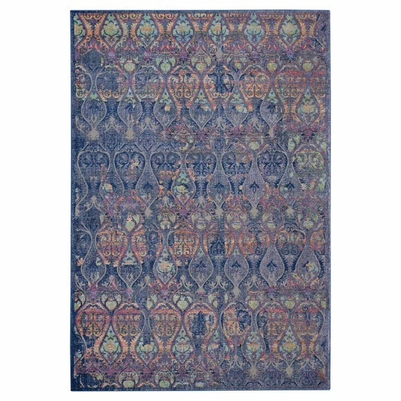 Exotic all-over design and silky sheen embue the Ankara Global rug with an authentic vintage appeal. Graceful repeating vase patterns in beautifully ombered blue, orange and green bring an extra energy and intrigue to any room.