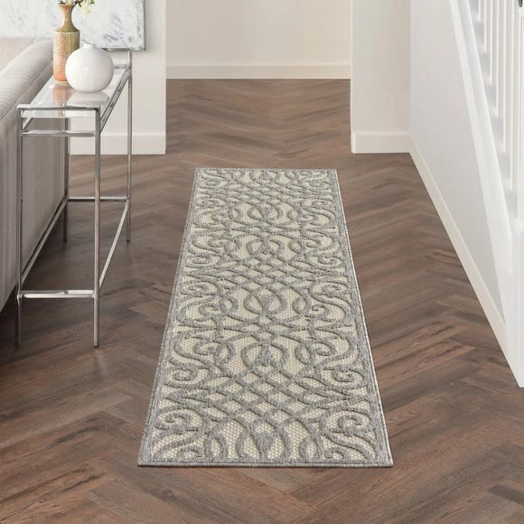 Made with 100% polypropylene, The Cozumel Scroll runner is ideal for use both indoors and out and comes in a range of colourways. This runner boasts a beautiful scrolled floral 3D carved desing with a high-low loop pile and is resistant to fading thanks to the hard wearing, machine-made construction.