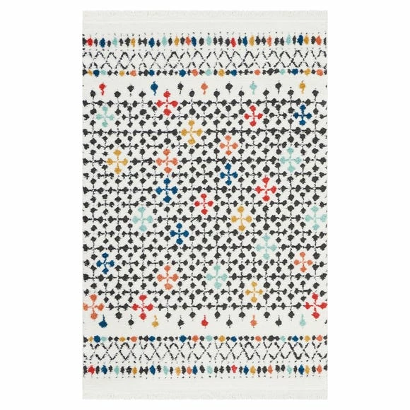 With its playful tribal theme, terrific tassels, and on-trend colour palettes, the Kamala collection of shaggy rugs will transform even the most ordinary of rooms into something extraordinary. Lively colours and tribal patterns bring extra life and energy to this collection. Accents of blue, red, and gold intermix with charcoal diamonds, with a soft short-pile shag texture and fringed trims, makes this rug a a fresh and fascinating focal point in any interior. These soft rugs are expertly powerloomed for an incredible look, and superior feel and lasting durability. On receiving your rug, please unroll and leave in a warm room for 24 hours before using to reduce wrinkles and curling from packaging. Can be carefully vacuumed using a floor or brush attachment. Occasionally rotate the rug to equalise wear. Clean spills immediately by blotting with a clean, dry white cloth and do not rub. Do not pull any loose threads, please cut carefully with scissors to remove. Avoid prolonged exposure to direct sunlight.